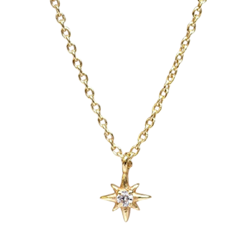 Halskette Gold, Sterlingsilber 925, Stern Anhänger mit Glitzerstein