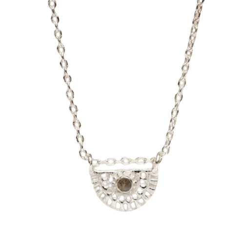 Halskette Silber, Sterlingsilber 925, runder Anhänger mit Glitzerstein