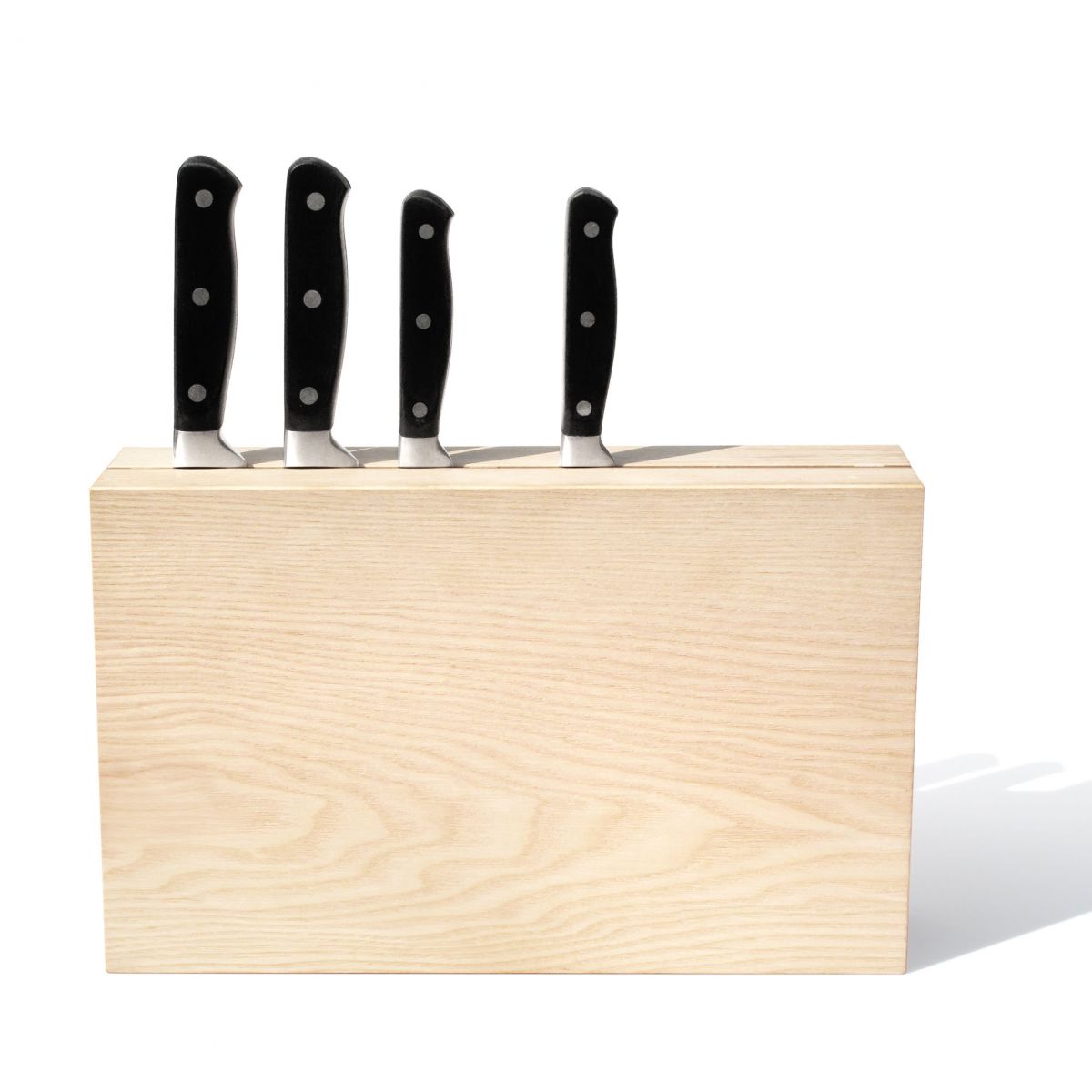 Das Design des Messerblock Timber Twin vom Designer Simon Bredt überrascht und überzeugt sofort. So einfach und schlicht kann ein Messerblock sein. Er ist perfekt für den täglichen Gebrauch und die Messer, die am meisten benutzt werden. Bis zu einer Klingenlänge von 21,5 cm können je nach Messerart ca. sechs bis acht Messer gut untergebracht werden.