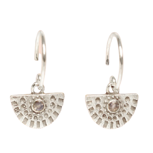 Ohrringe Silber, Sterlingsilber 925, Halbmond Anhänger mit Glitzerstein