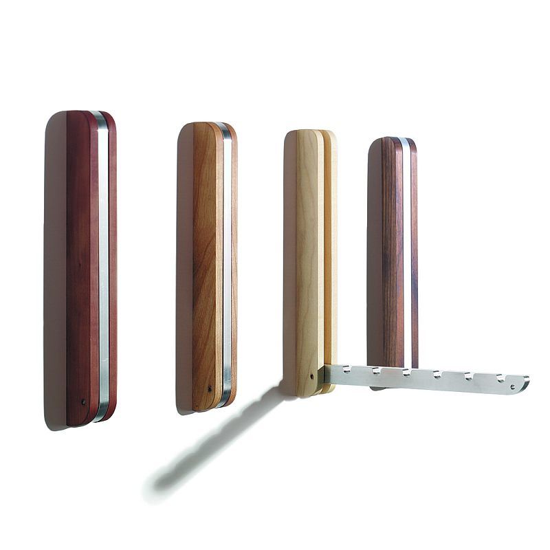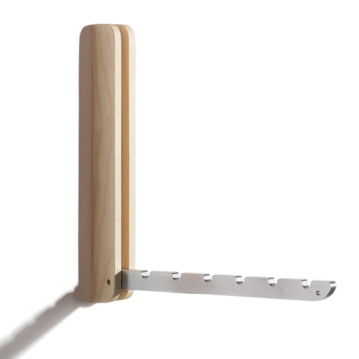 Klappt auf, wenn man ihn braucht - der Wandhaken von side by side. Perfekt als Kleiderlüfter auf Balkon, der Terrasse oder natürlich auch als Garderobe geeignet. Erhältlich ist der Wandhaken in vier unterschiedliche Holzarten zur Auswahl: Ahorn (helles Holz), Kirsche (mitteldunkles Holz), Birne (dunkles Holz rötlich) oder Nuss(dunkles Holz bräunlich).